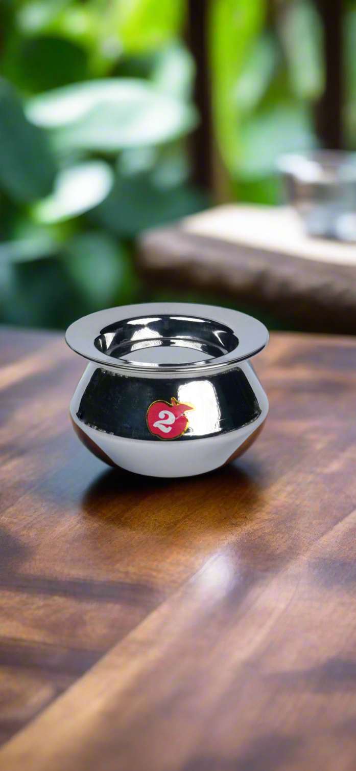 The Handi is a miniature stainless steel handi designed for toy kitchens. Its compact size and durable material make it perfect for young chefs to use while cooking up their imagination. Crafted with high-quality stainless steel, the Handi is a safe and realistic addition to any toy kitchen set."